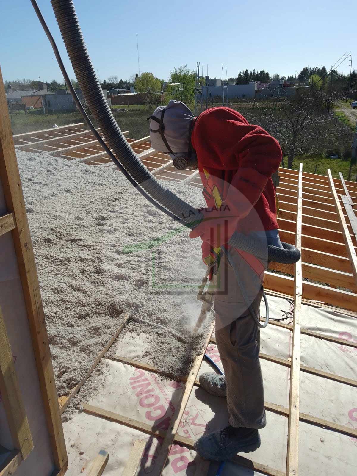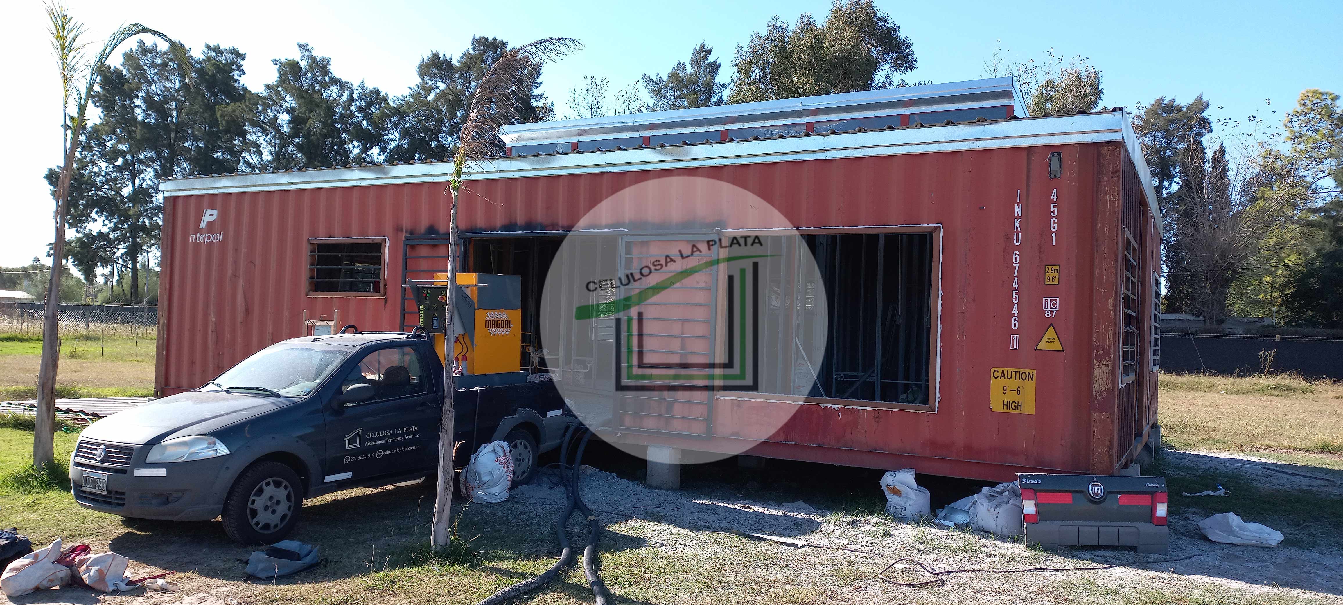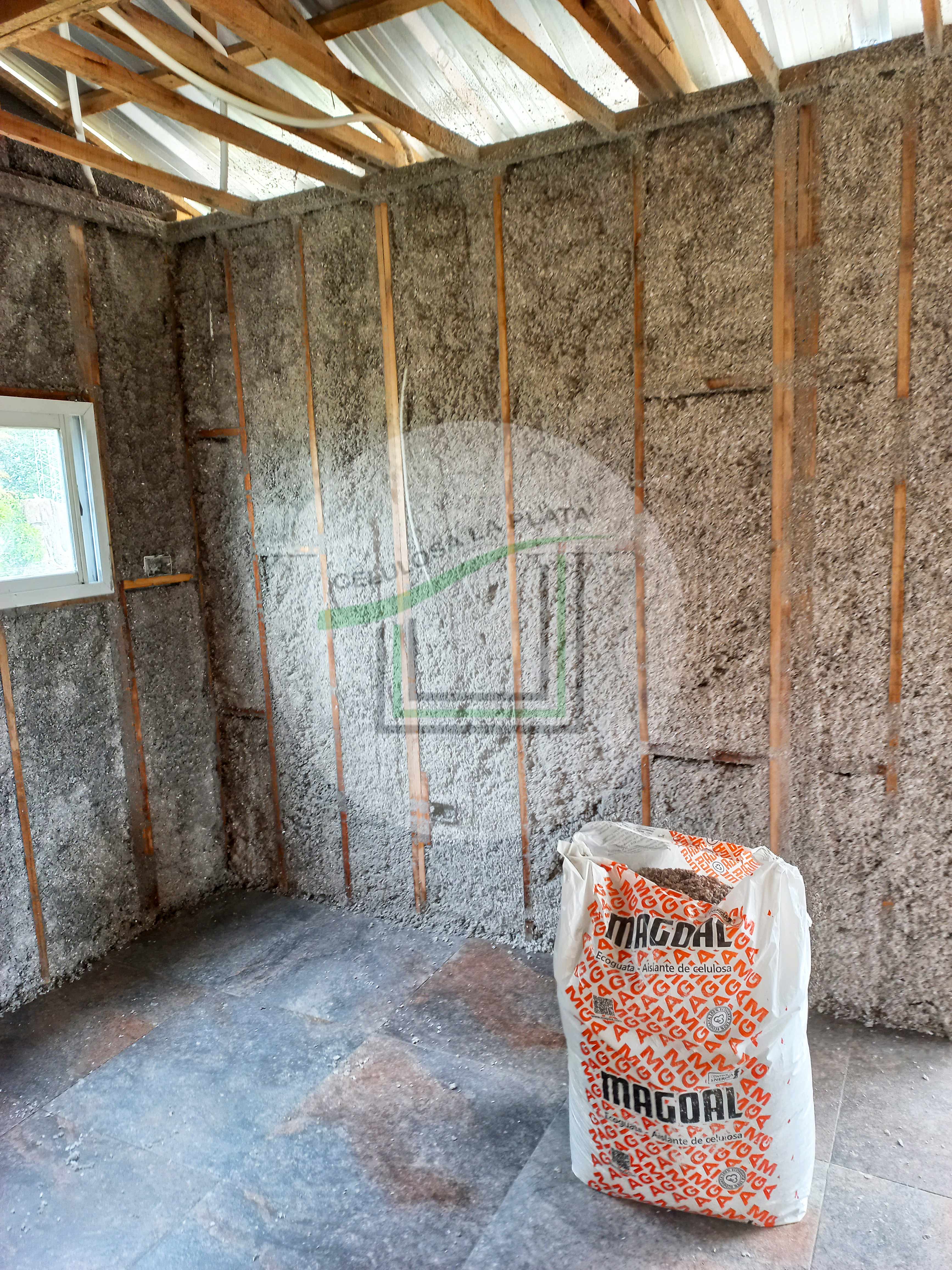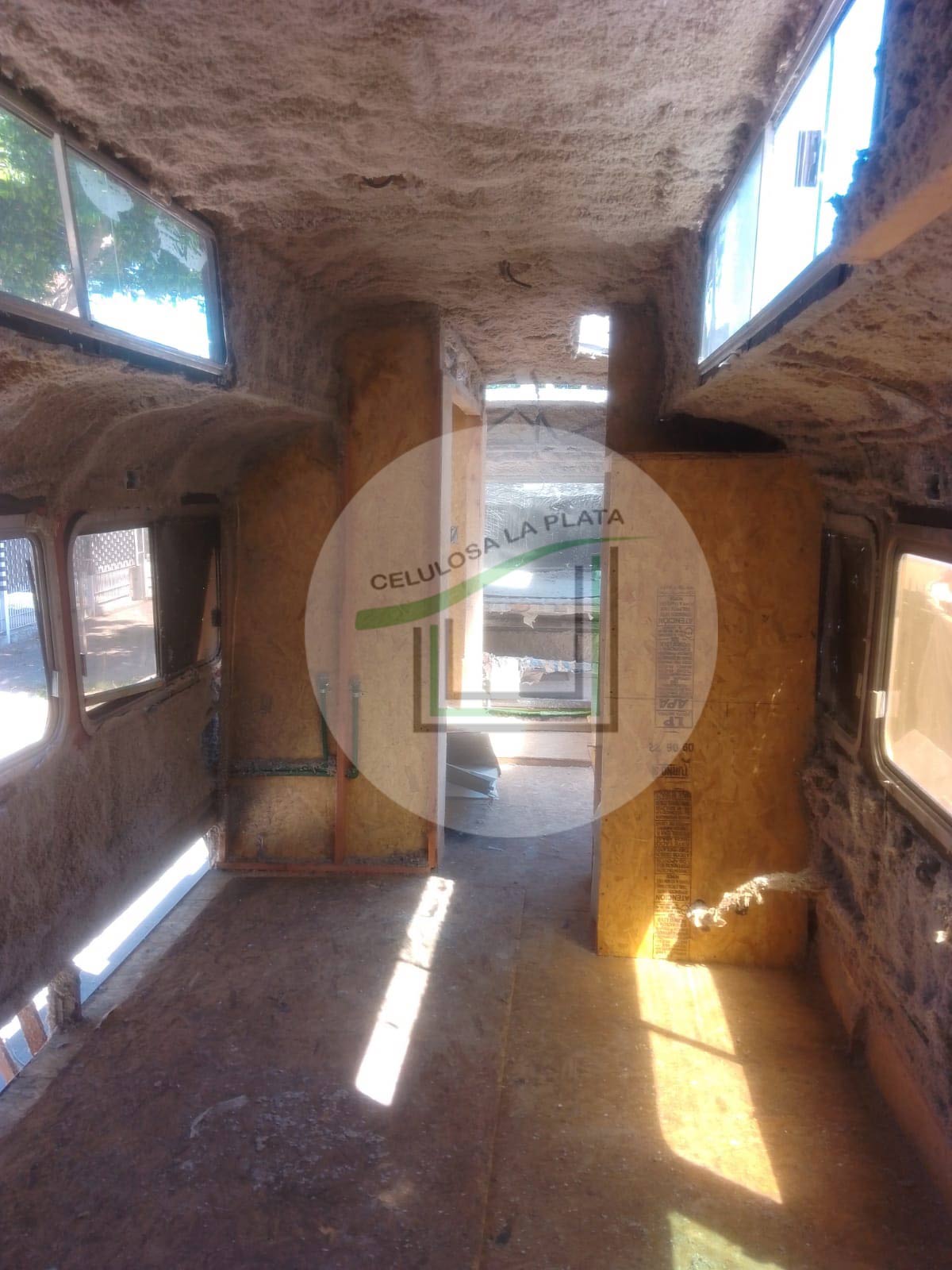 Instalación de celulosa proyectada para Cocoliche, un local de ropa en La Plata con terminación final de celulosa pintada para dejar a la vista.