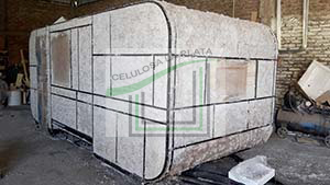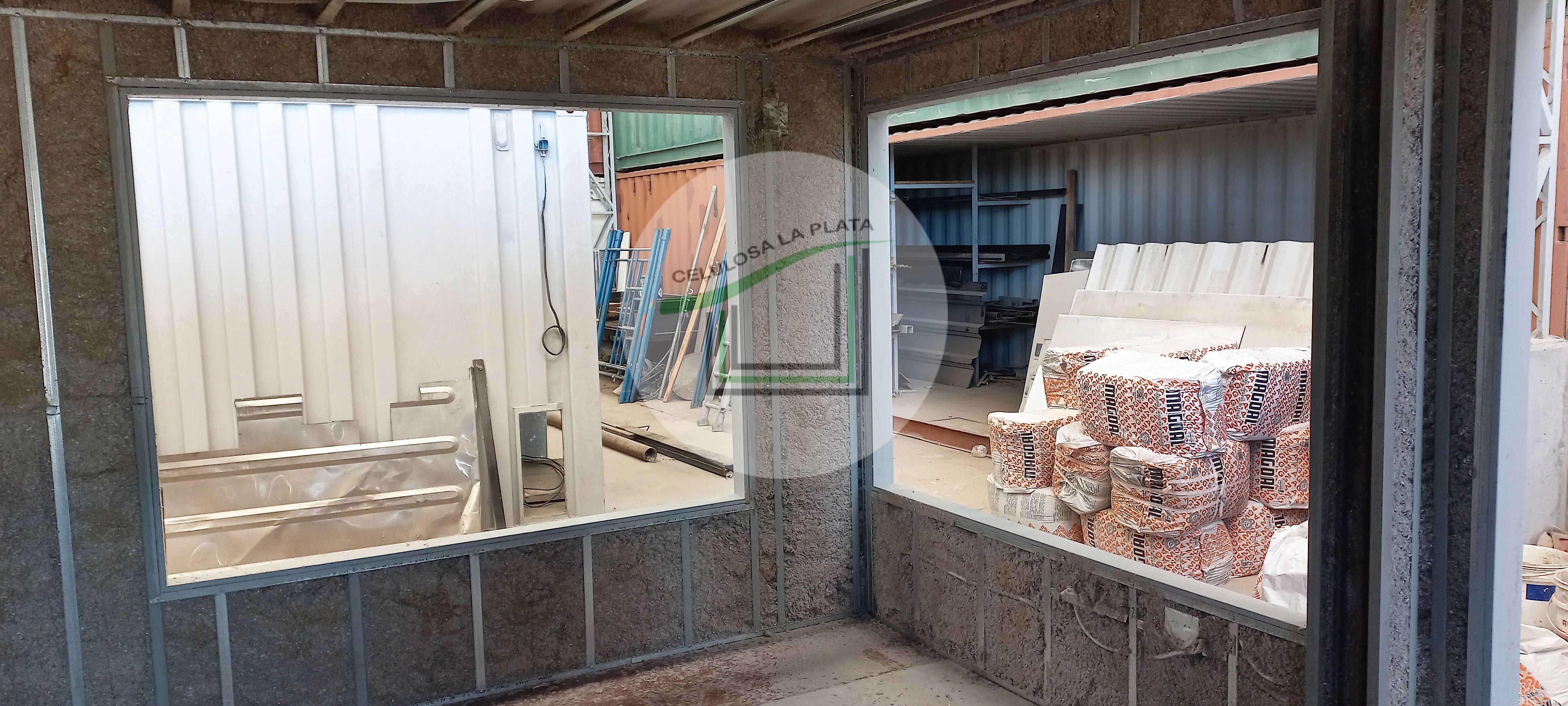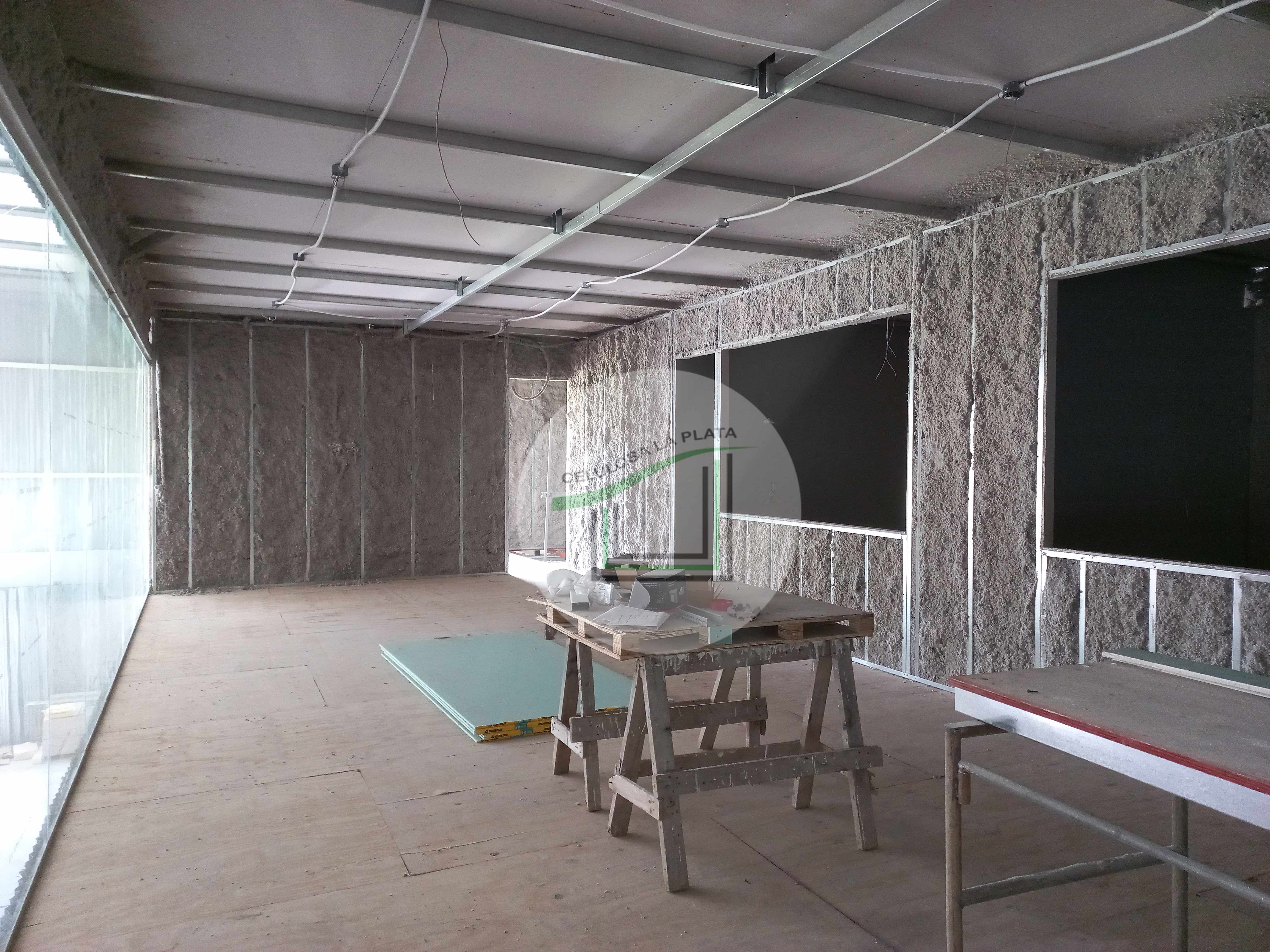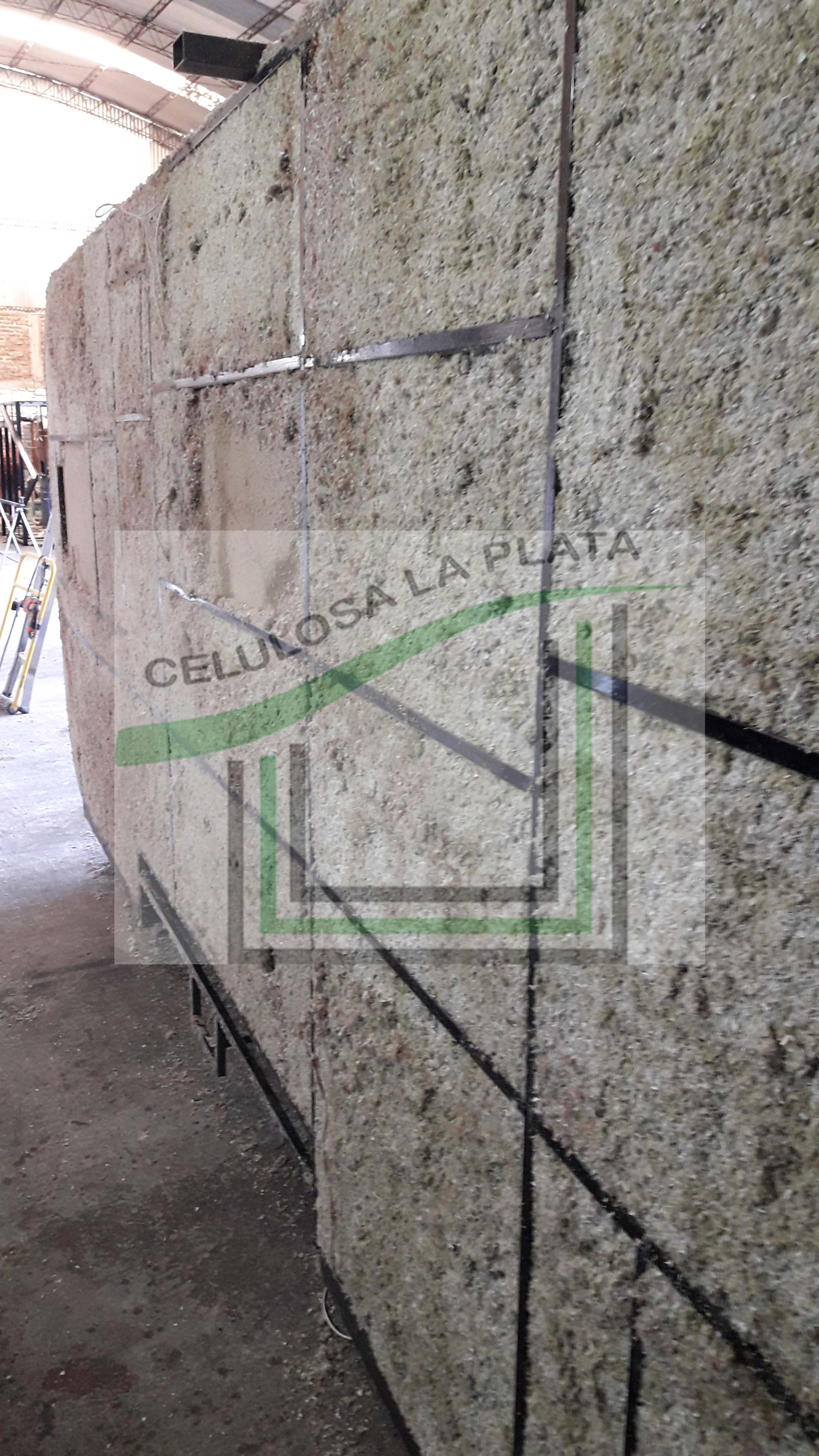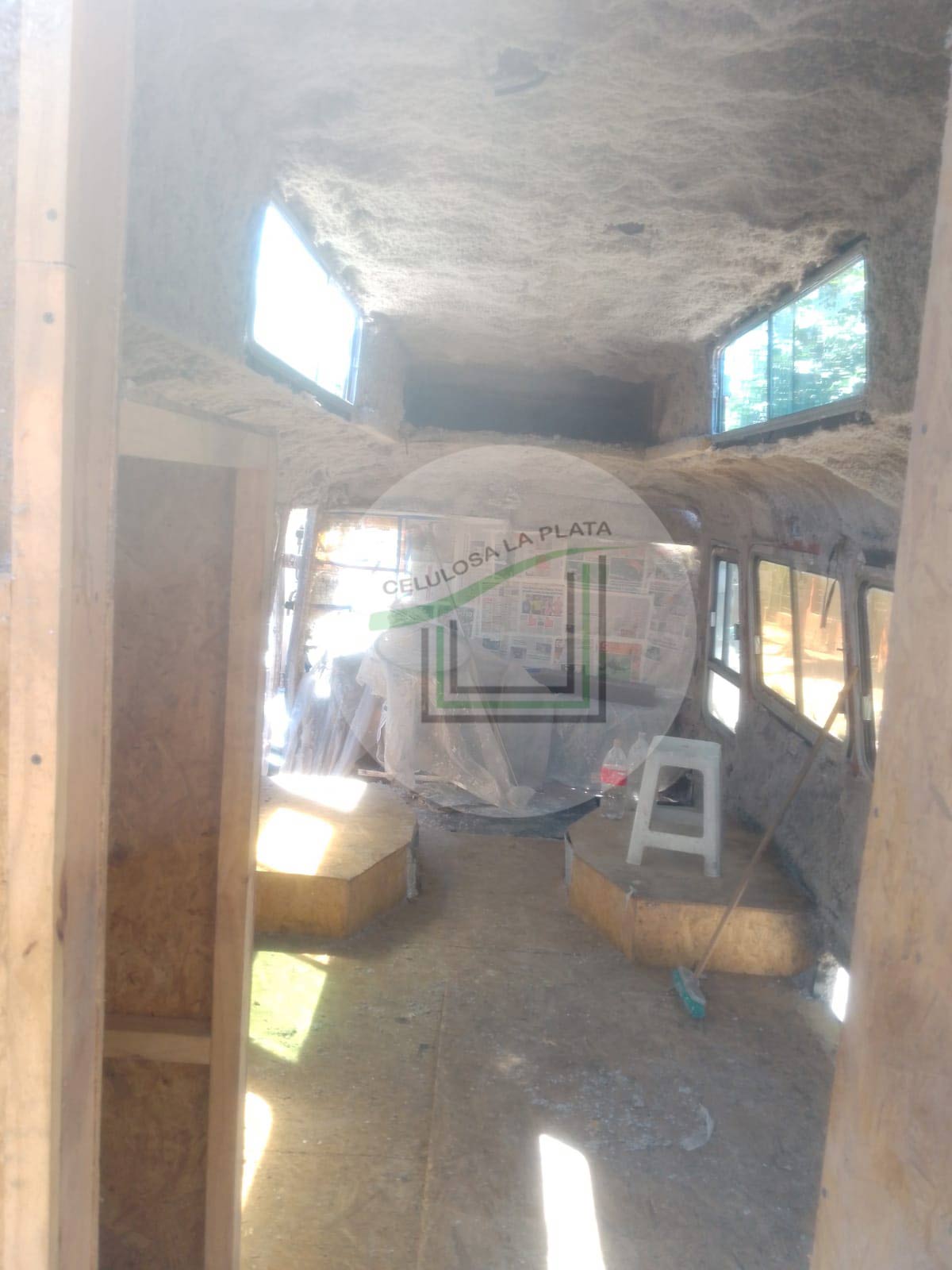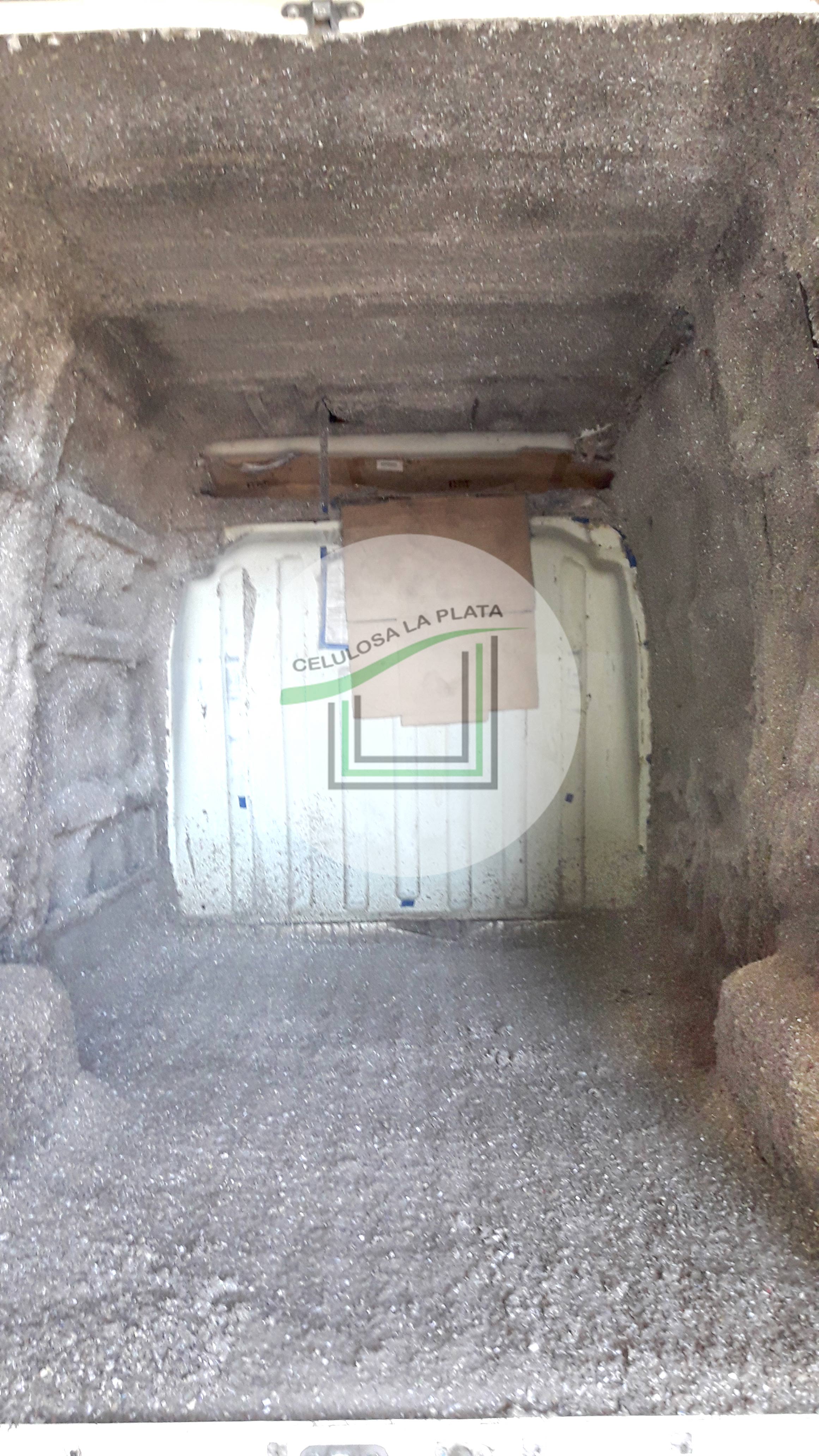 Instalación de celulosa proyectada para Cocoliche, un local de ropa en La Plata con terminación final de celulosa pintada para dejar a la vista.